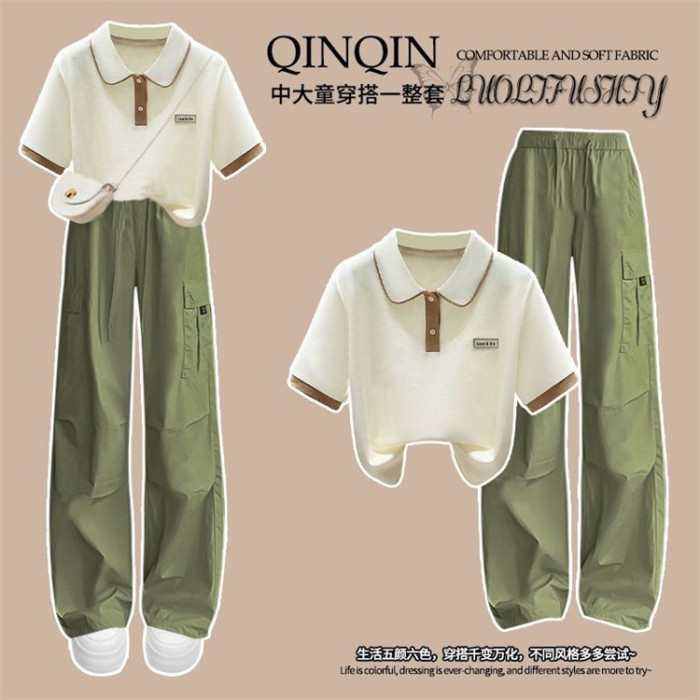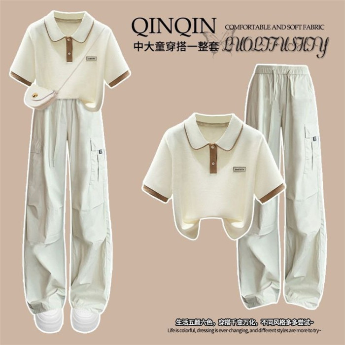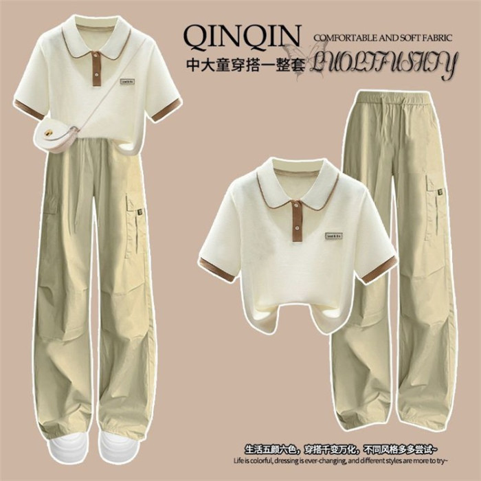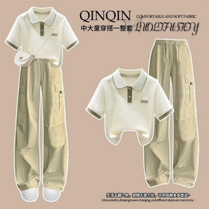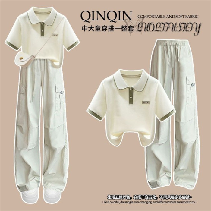 巨好看女童夏2025新款爆款高級感純棉短袖polo衫套裝中大童工裝褲