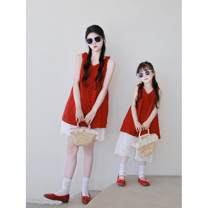 時尚度假親子裝夏季2025超火母女裝高級洋氣炸街韓版旅遊背心裙子