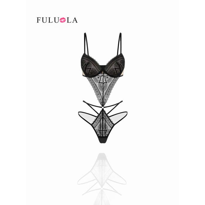 法式原創設計性感純欲黑色蕾絲吊帶內衣連體衣家居服新款女睡衣