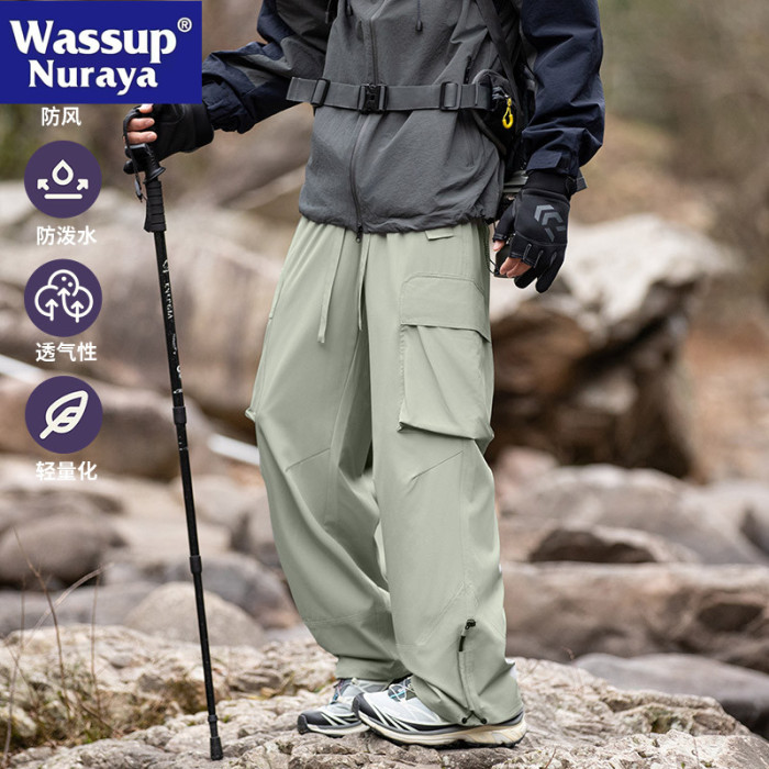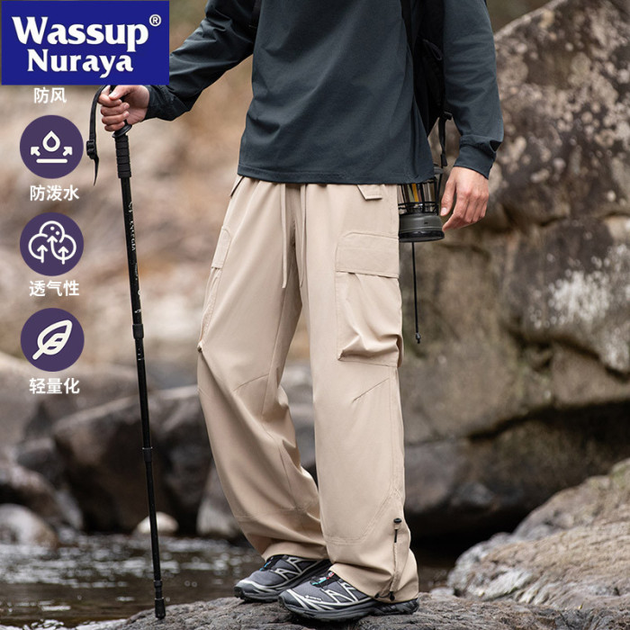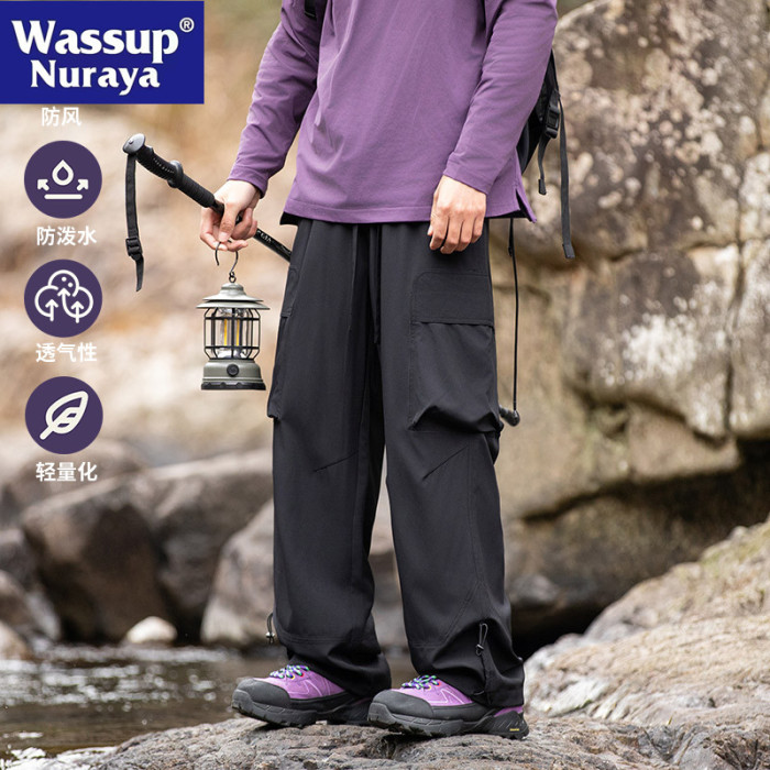 WASSUP NURAYA美式多口袋軟殼工裝褲男春秋寬松濶腿運動繖兵褲子