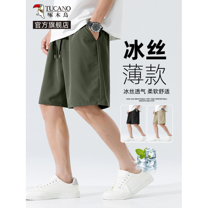 啄木鳥官方冰絲短褲男款夏中年2025運動休閒褲速乾彈力五分褲薄Y