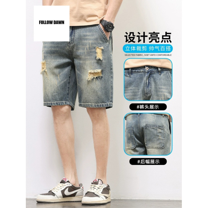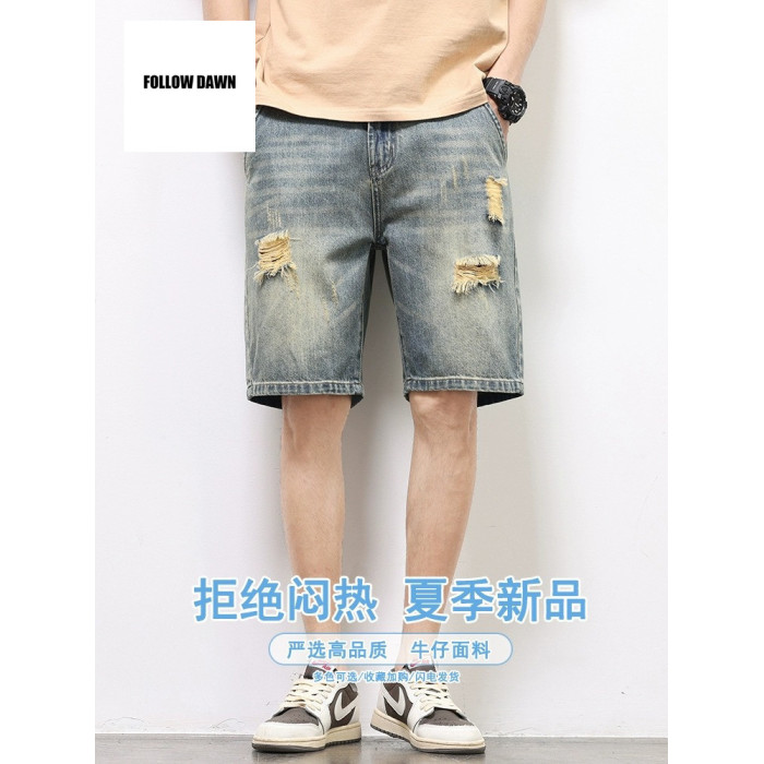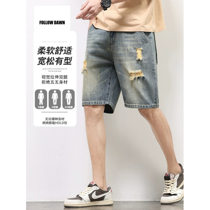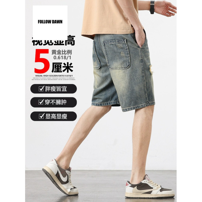 牛仔短褲男士潮牌美式休閒夏季薄款寬松痞帥五分中褲