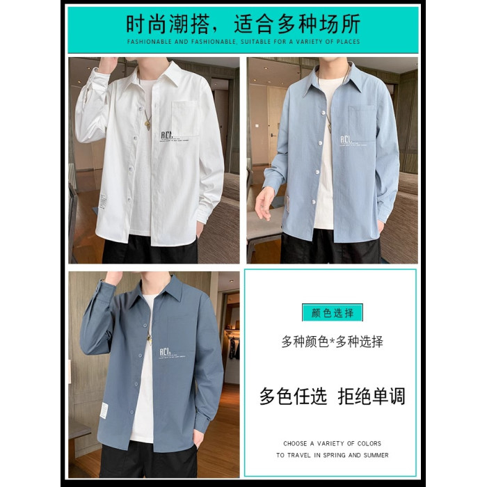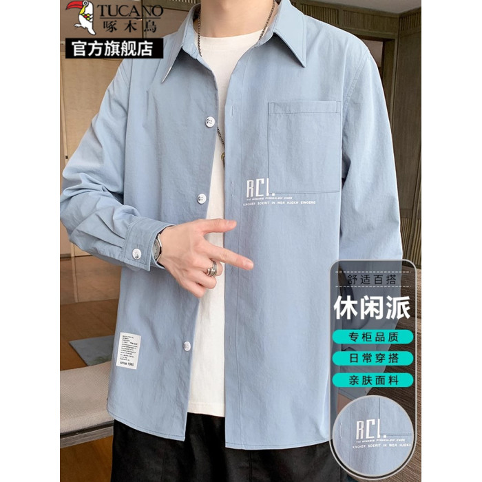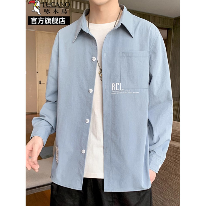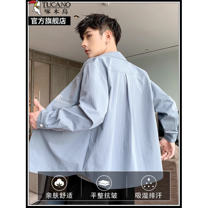 啄木鳥襯衫男士夏季薄款2025新款寬松翻領長袖襯衣日系休閒外套K