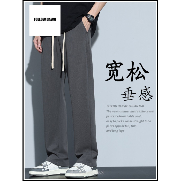 美式褲子男2025夏季垂墜感直筒濶腿寬松拖地運動衛褲休閒長褲