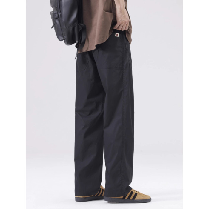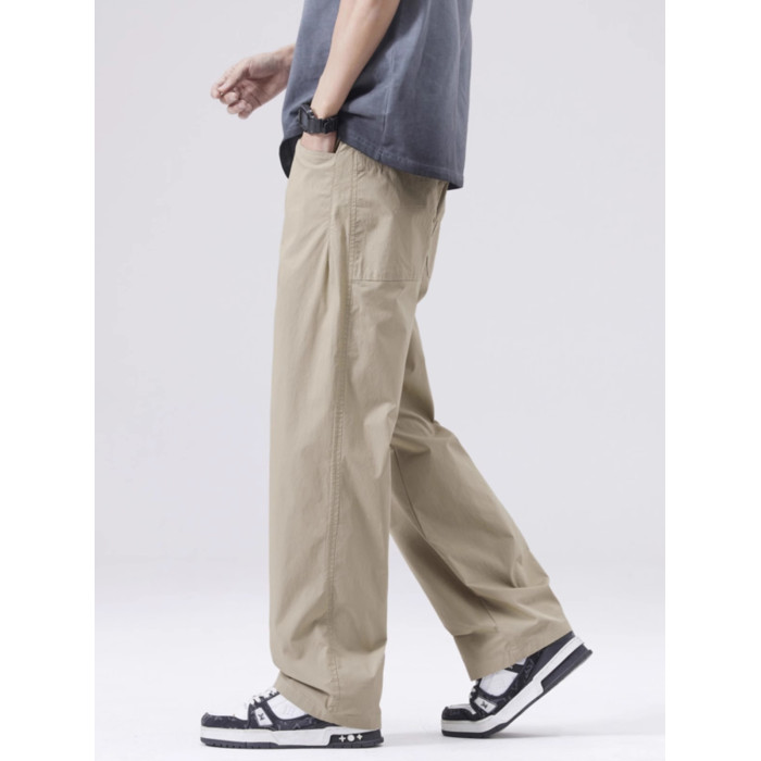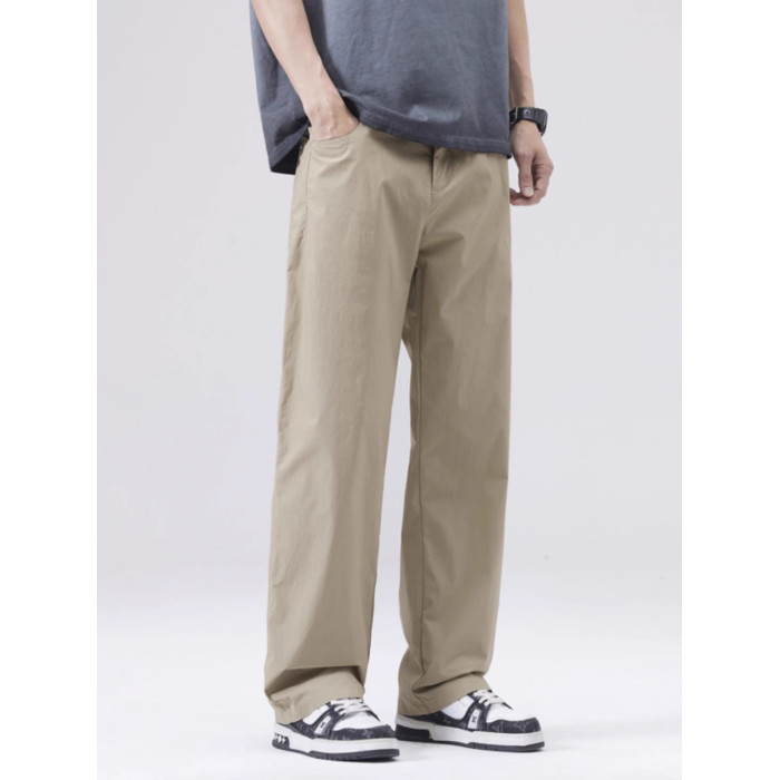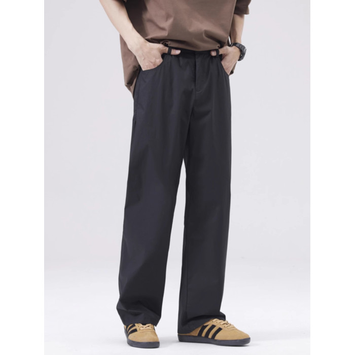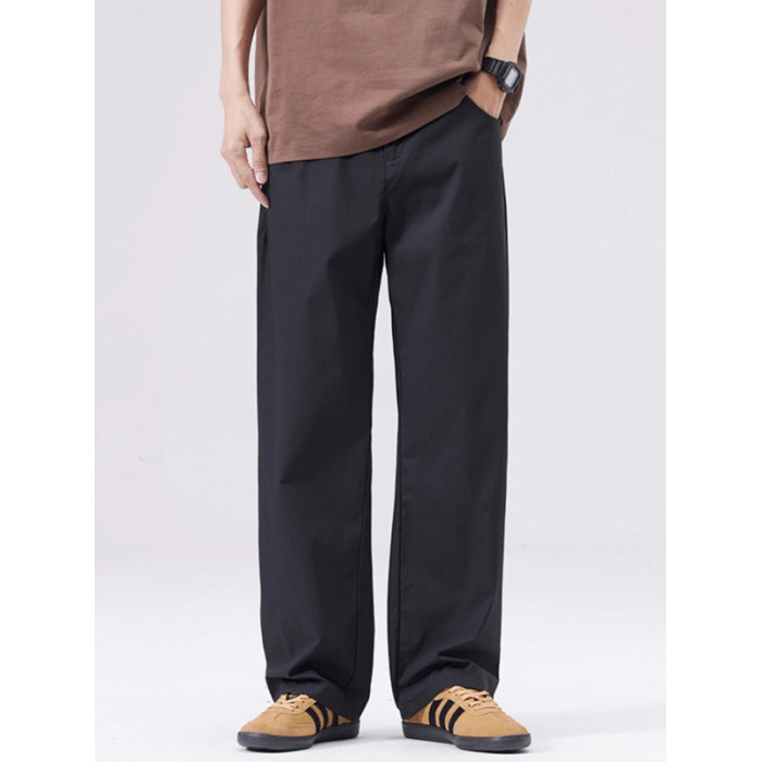 冰絲褲子男士2025夏季薄款潮牌黑色濶腿寬松垂感直筒工裝休閒褲