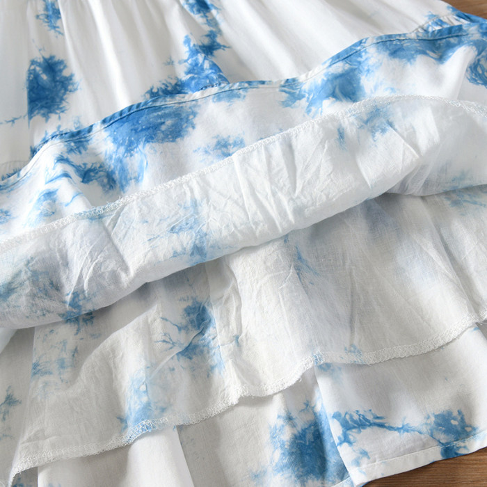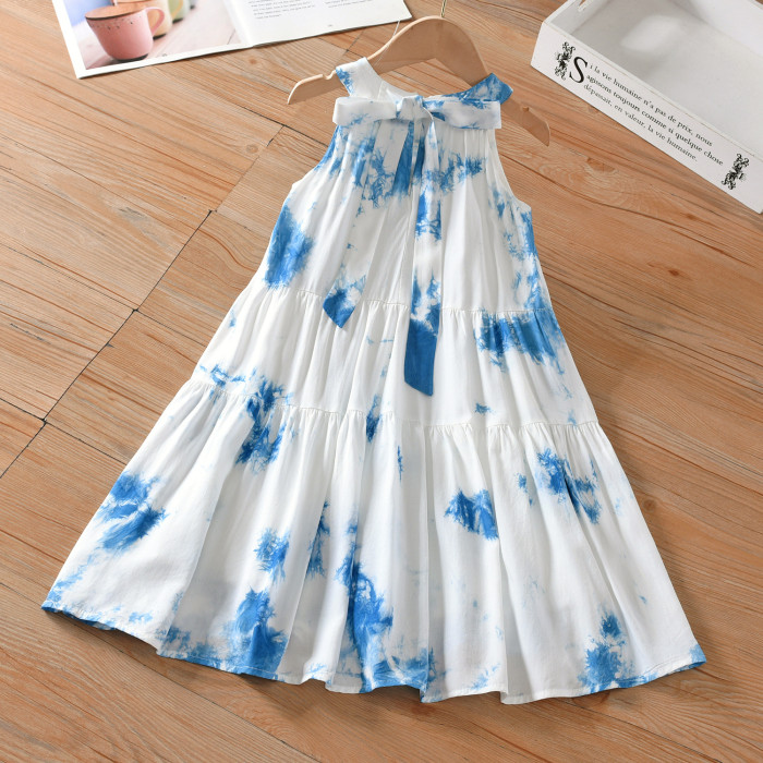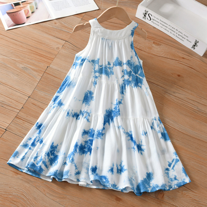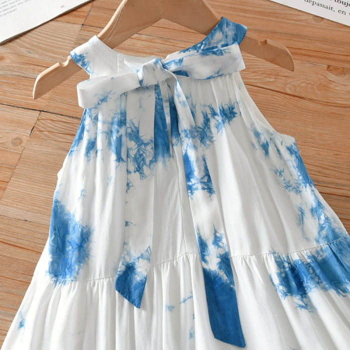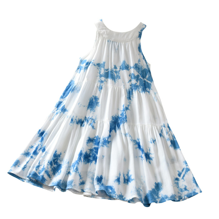 女童夏季法式茶歇連衣裙童裝雲南植物古法紥染裙子掛脖度假背心