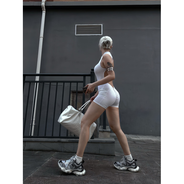 歐美辣妹露背無袖背心連體衣女夏季新款性感緊身休閒運動包臀短褲