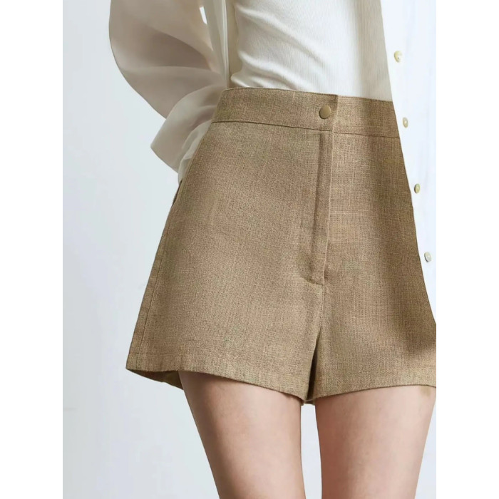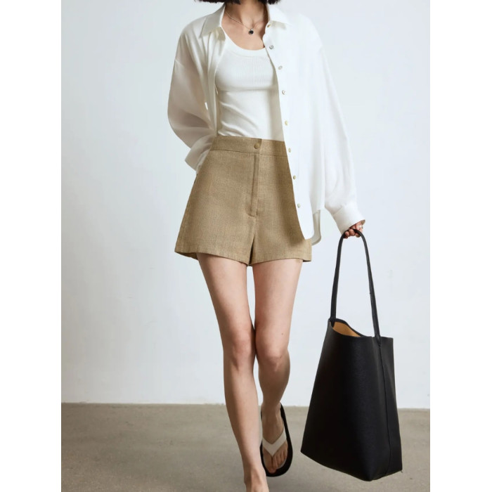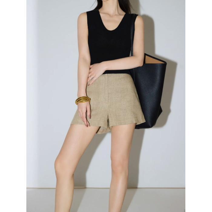 a字李星兒同款百搭爆款24簡約高腰顯瘦亞麻女短褲卡其色黑色白色