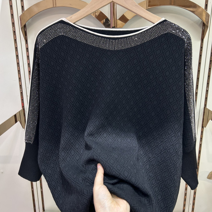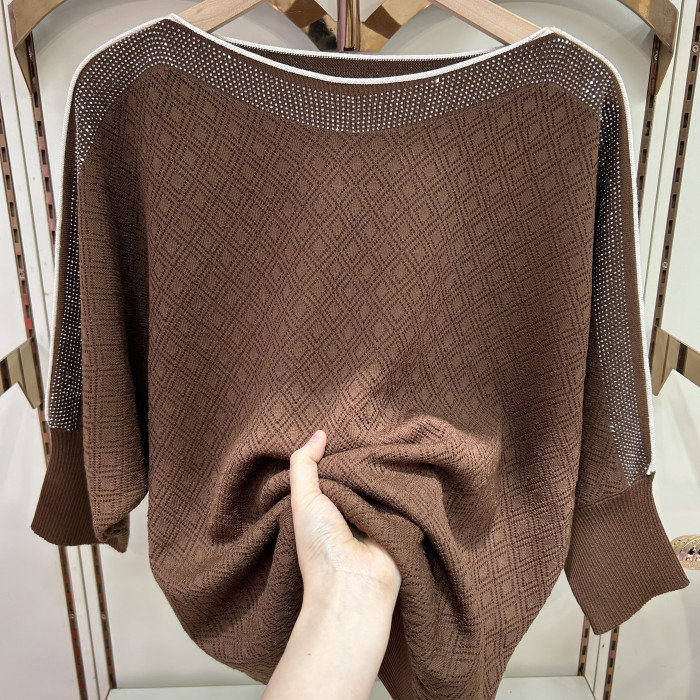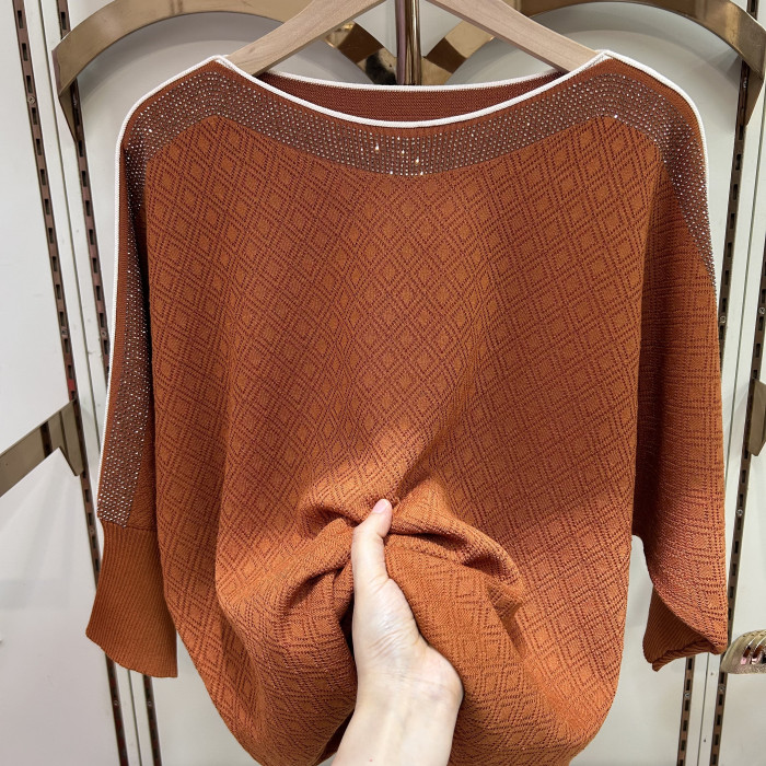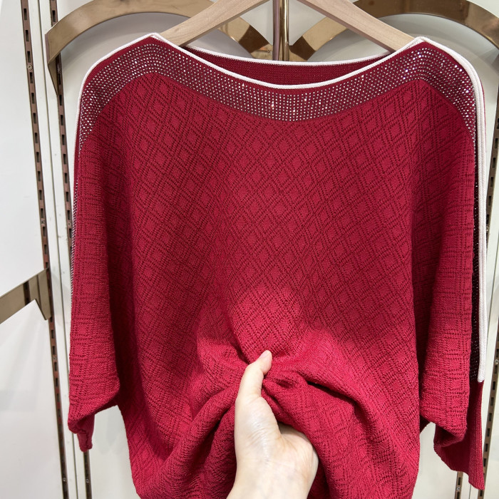 洋氣撞色七分袖媽媽春裝桑蠶絲蝙蝠袖針織打底衫中老年大碼女裝薄