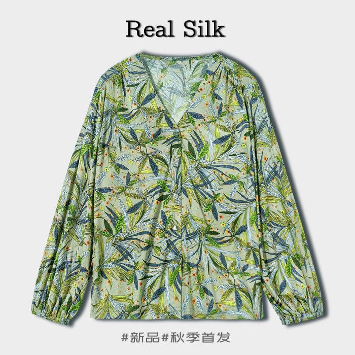 真絲長袖紐釦襯衫桑蠶絲打底衫春秋新款中老年女裝媽媽裝休閒上衣