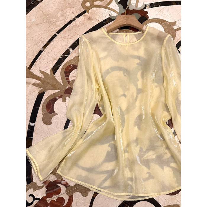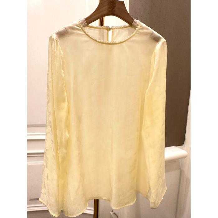 Misslu白色新中式國風上衣內搭襯衫輕奢高級感光感清透天絲打底衫