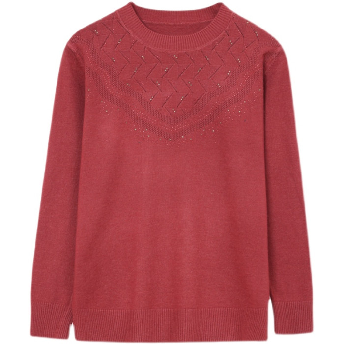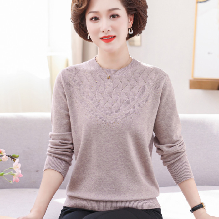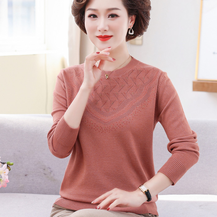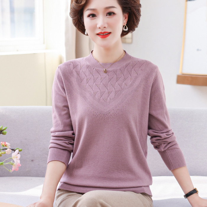 中年春秋彈力上衣新款中老年女秋裝薄款毛衣40嵗50媽媽純色打底衫