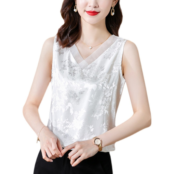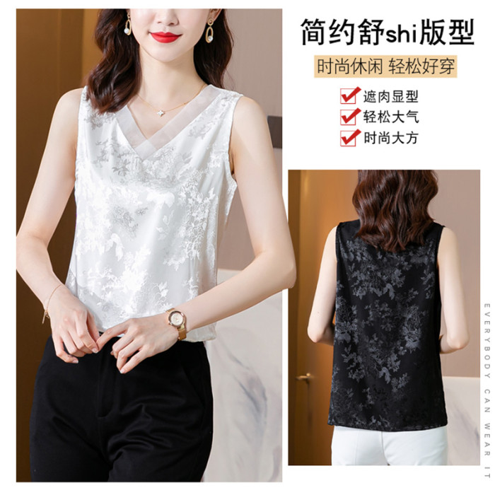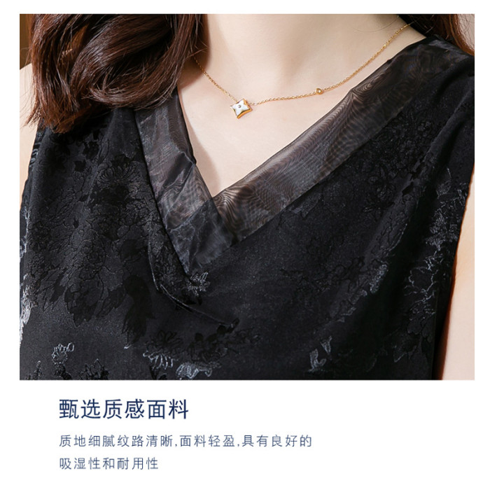 中年媽媽夏裝無袖背心打底衫香雲紗2025新款內搭外穿醋酸真絲上衣