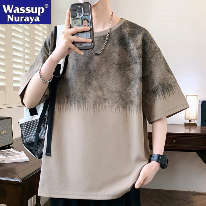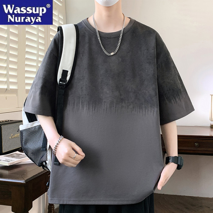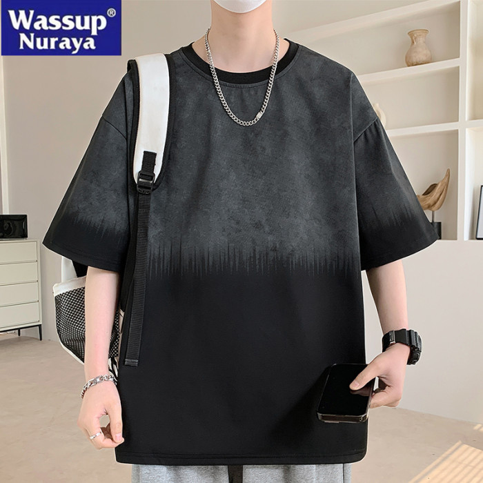 WASSUP NURAYA大碼水洗漸變t恤男士短袖夏季寬松2025新款半袖體恤