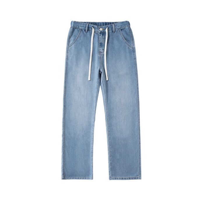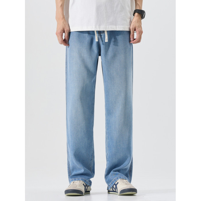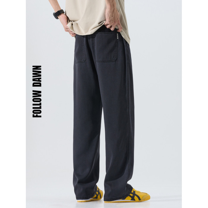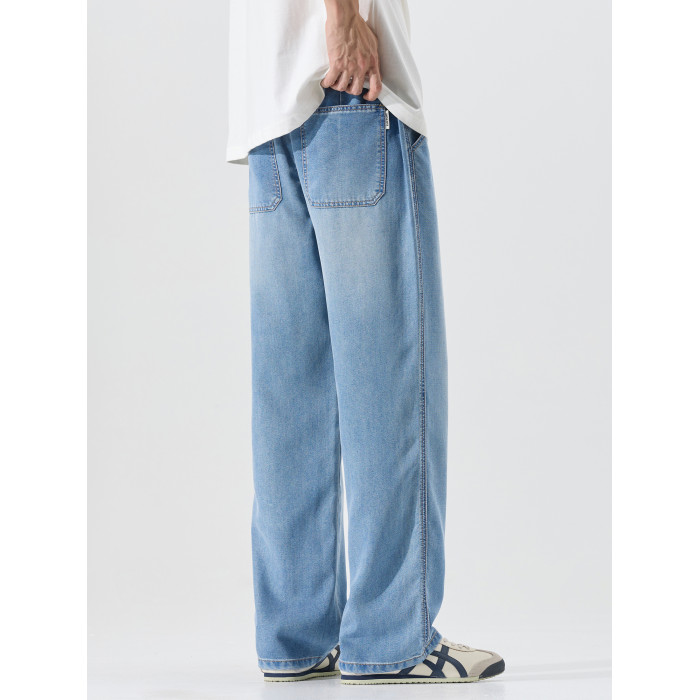 2025春夏新款萊賽爾天絲牛仔褲潮牌寬松垂感美式高街直筒褲薄款男