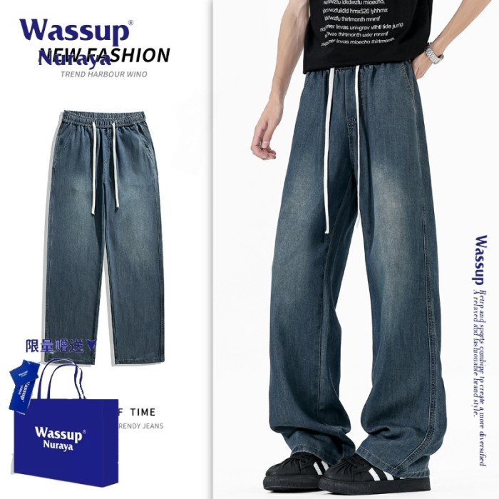 WASSUP NURAYA萊賽爾天絲牛仔褲男夏季薄款寬松直筒褲潮牌濶腿褲
