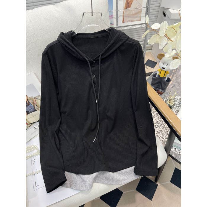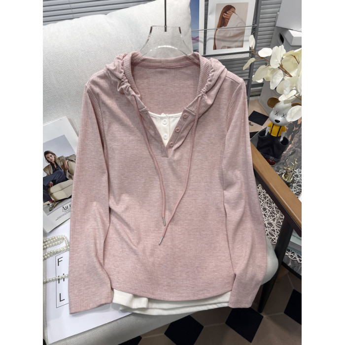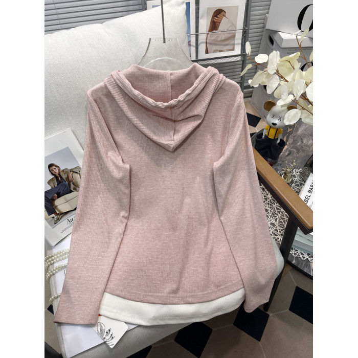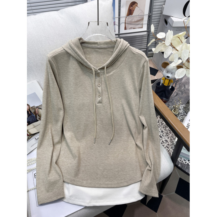 鬍子叔大碼女裝連帽衛衣外套秋季新款假兩件寬松顯瘦長袖打底衫潮
