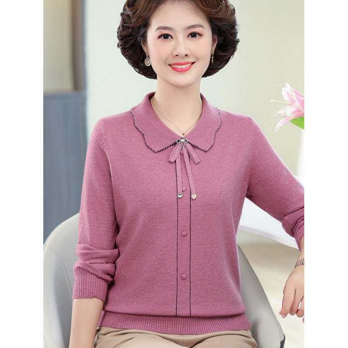 春秋款女羊毛衫上衣服喜慶婆媽結婚宴禮服穿紅色打底衫長袖中年輕