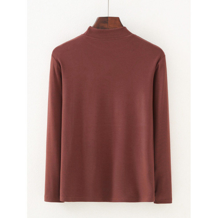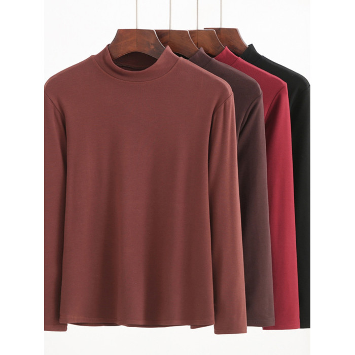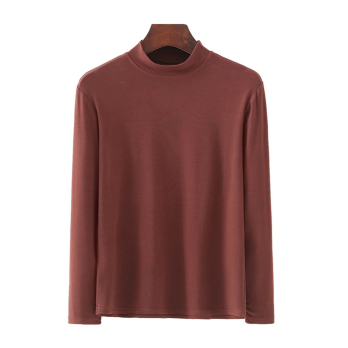 媽媽冬季半高領打底衫中老年女時尚貼身純色內搭奶奶長袖彈力秋衣
