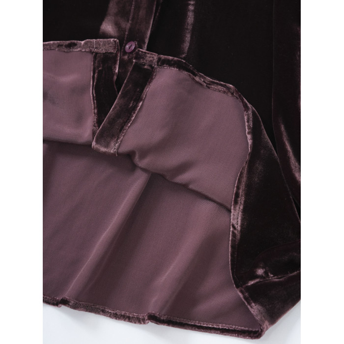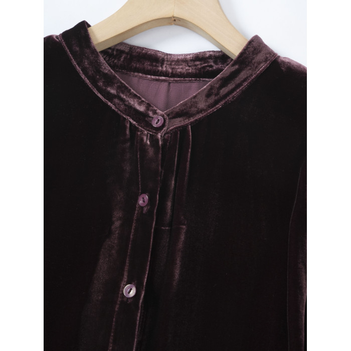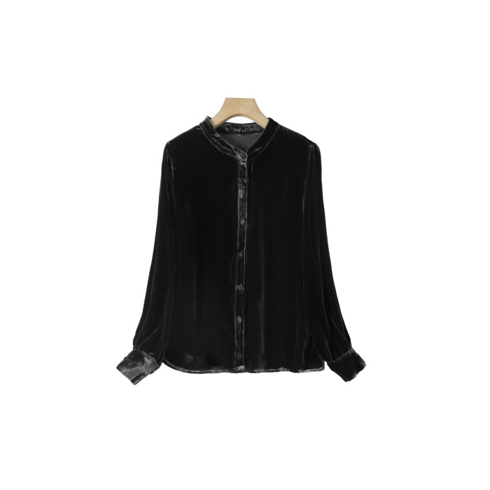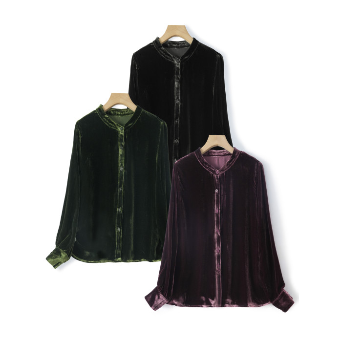 真絲絲絨襯衫女長袖春秋款桑蠶絲上衣寬松顯瘦百搭純色立領打底衫