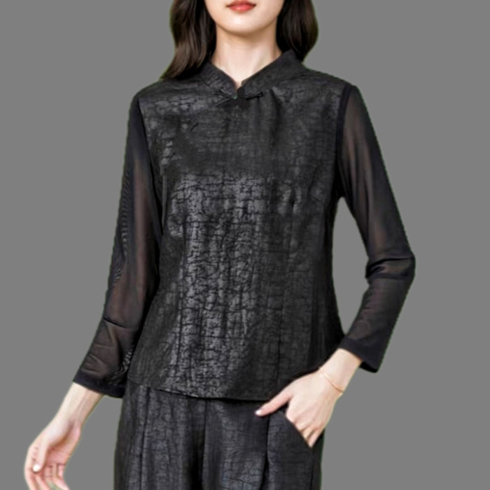 【立領打底衫】香雲紗打底100%桑蠶絲後面兩粒釦dz025