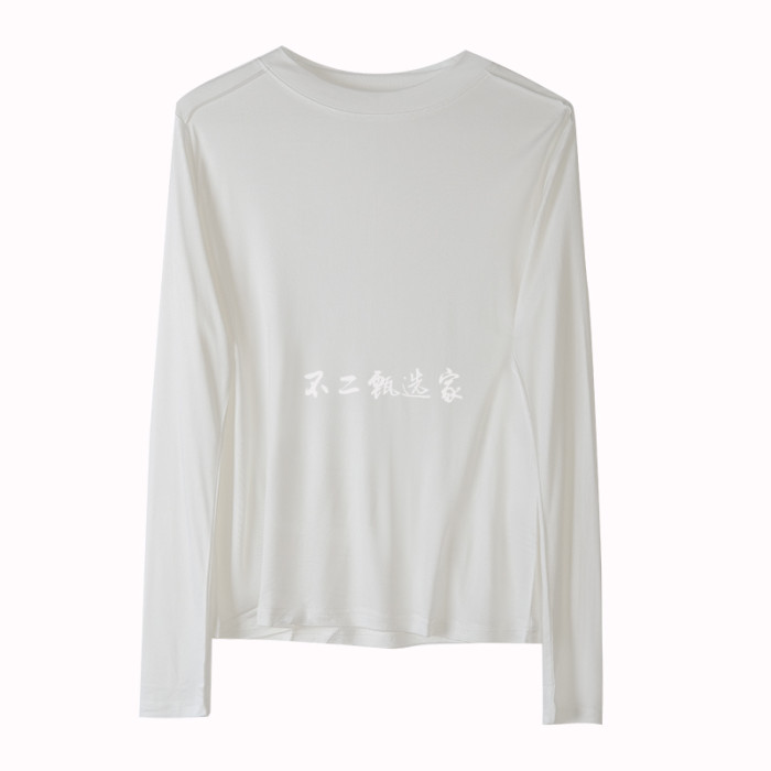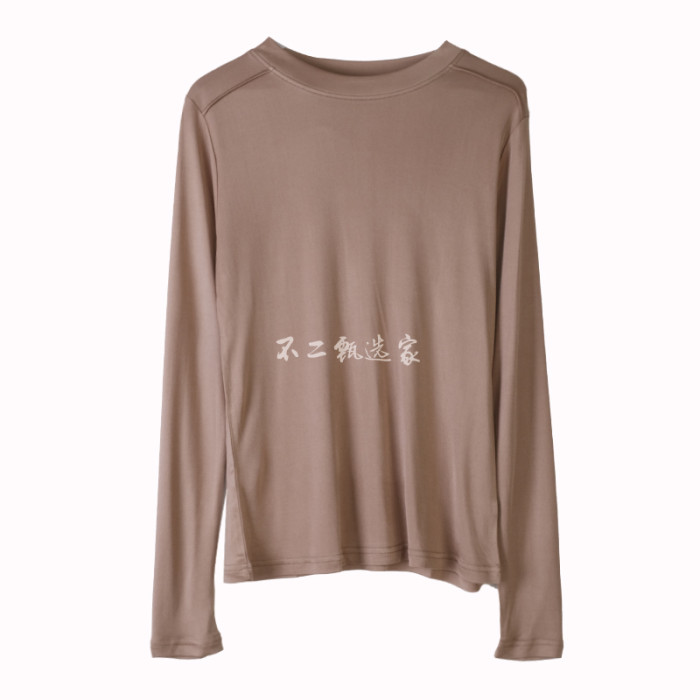 不二甄選桑蠶絲肩璋圓領長袖百搭打底衫