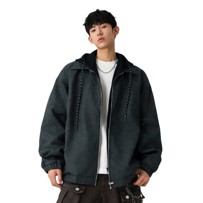 WASSUP NURAYA美式復古假兩件皮衣夾克男士春秋寬松休閒防風外套