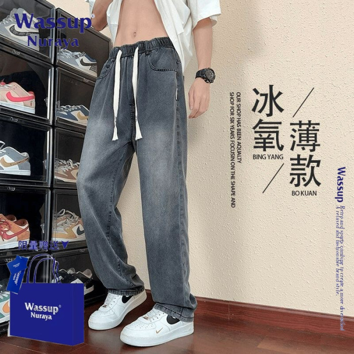 WASSUP NURAYA萊賽爾天絲牛仔褲男夏季薄款寬松百搭直筒拖地褲子