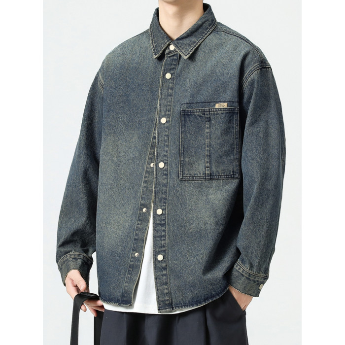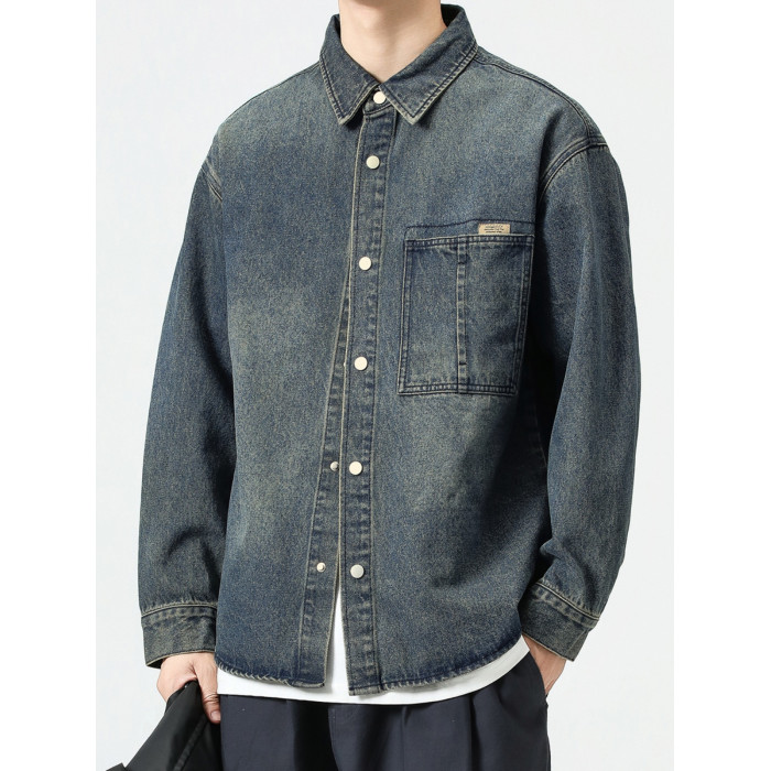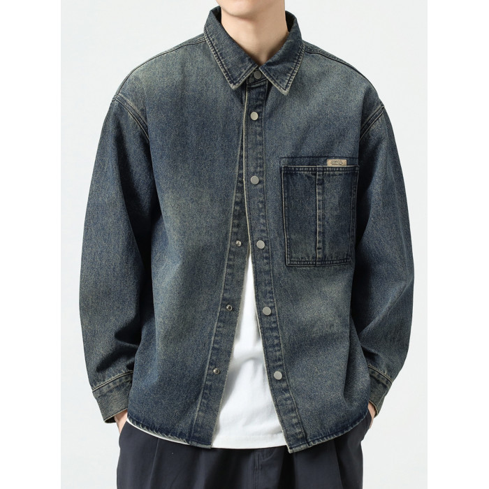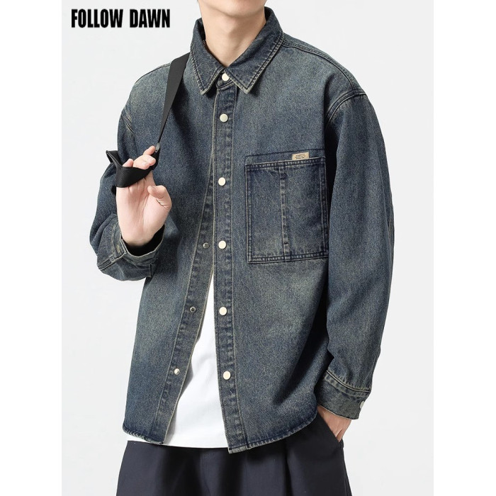 男裝美式工裝牛仔襯衫男長袖休閒襯衣2025春季復古潮流男士外套