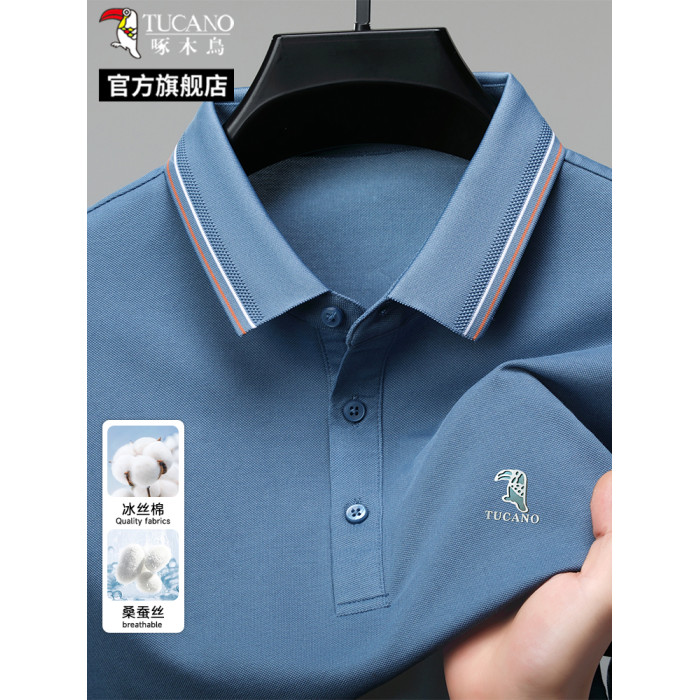 【7A抗菌桑蠶絲】啄木鳥男士短袖t恤2025新款父親爸爸裝polo衫男C