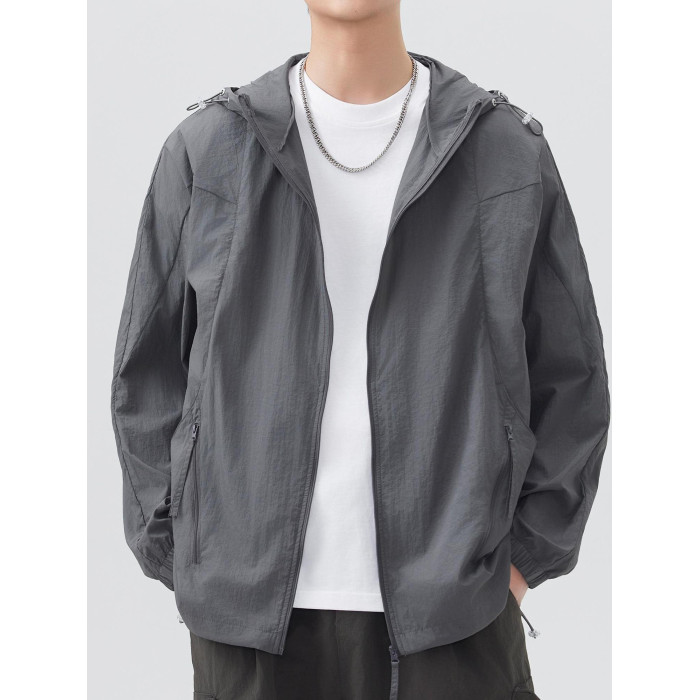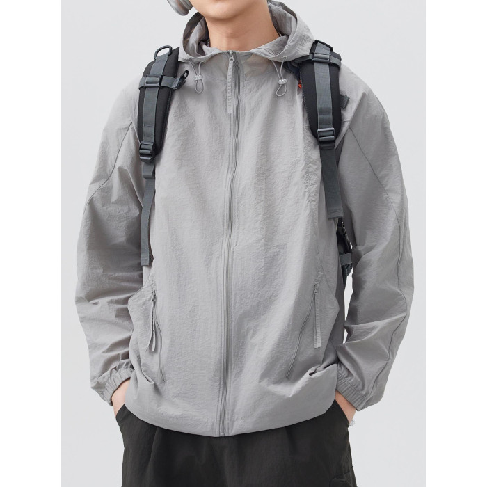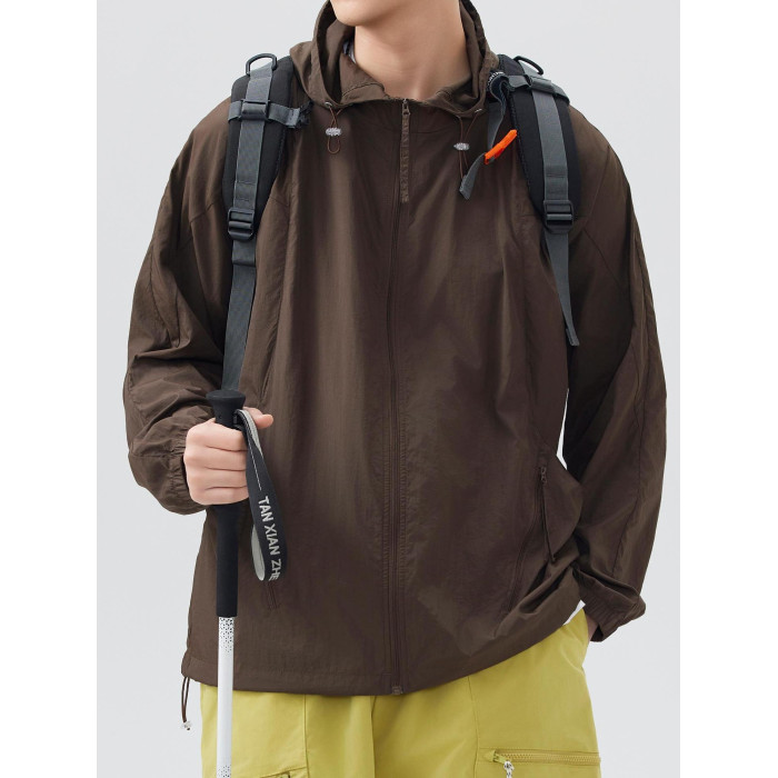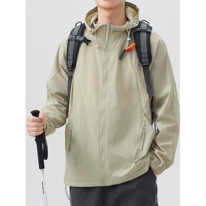 釣魚戶外運動防曬衣男款2025夏季寬松休閒防紫外線純色連帽外套