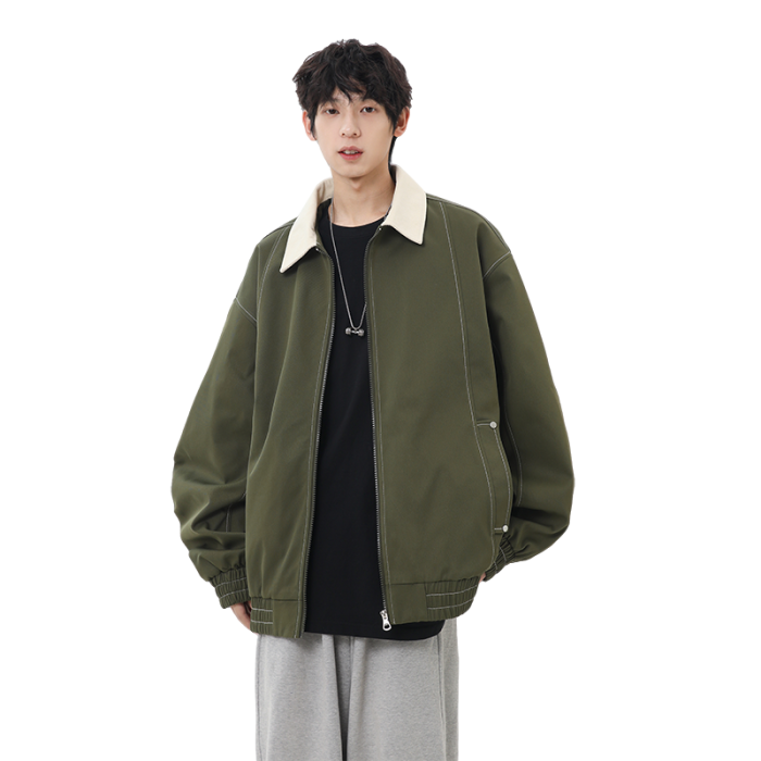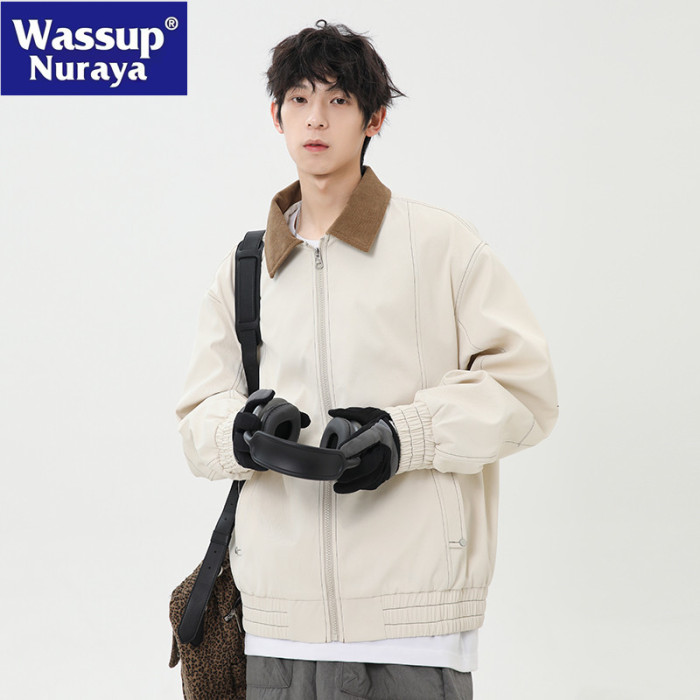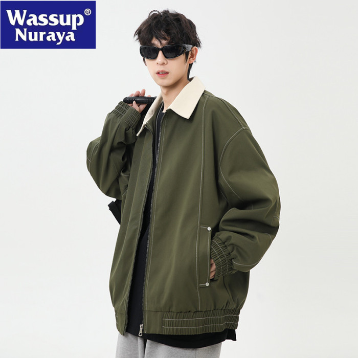WASSUP NURAYA美式工裝外套男士春秋寬松大碼休閒翻領飛行員夾克