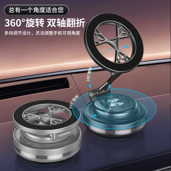 真空吸附車用手機支架 汽車導航出風口雙面旋轉磁吸支架