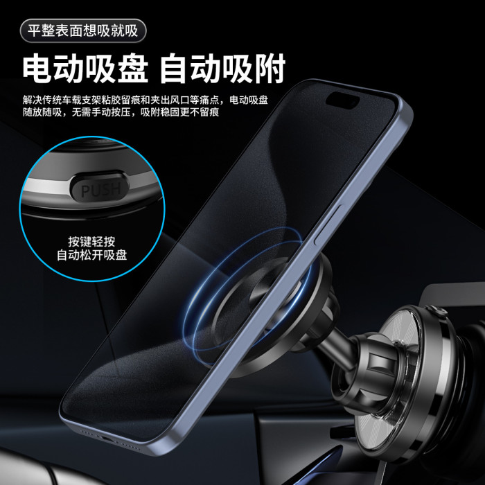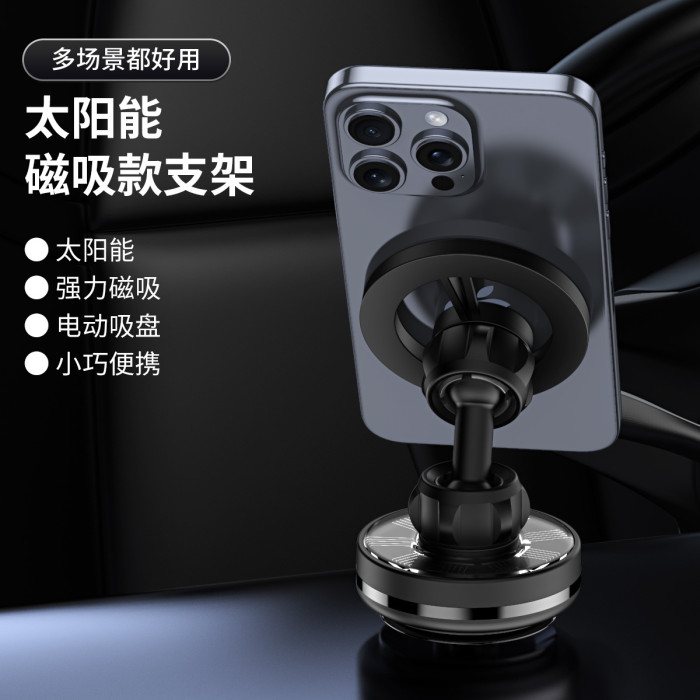 新款磁吸車用手機支架 自由調節雙萬向頭支架太陽能強磁吸附支架