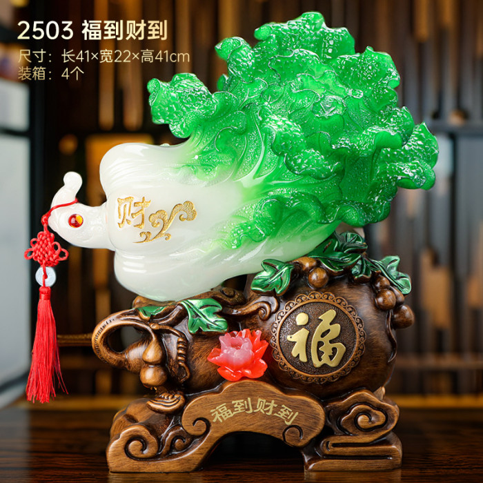 仿玉白菜工藝品擺件中式工藝品樹脂家居開業喬遷禮品中式藝術擺件
