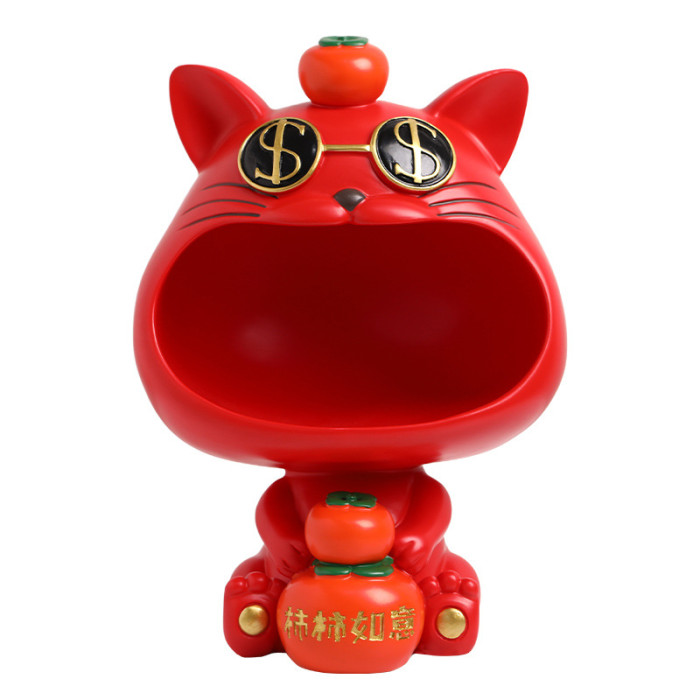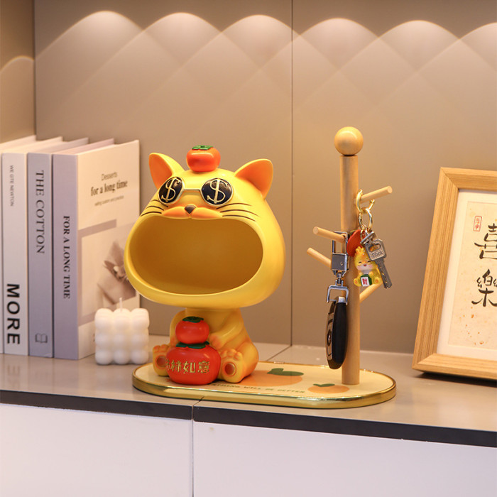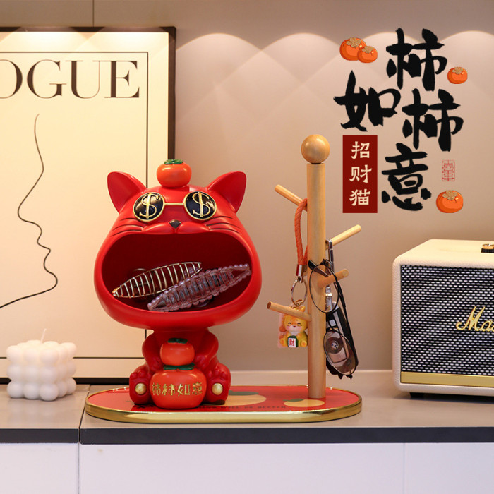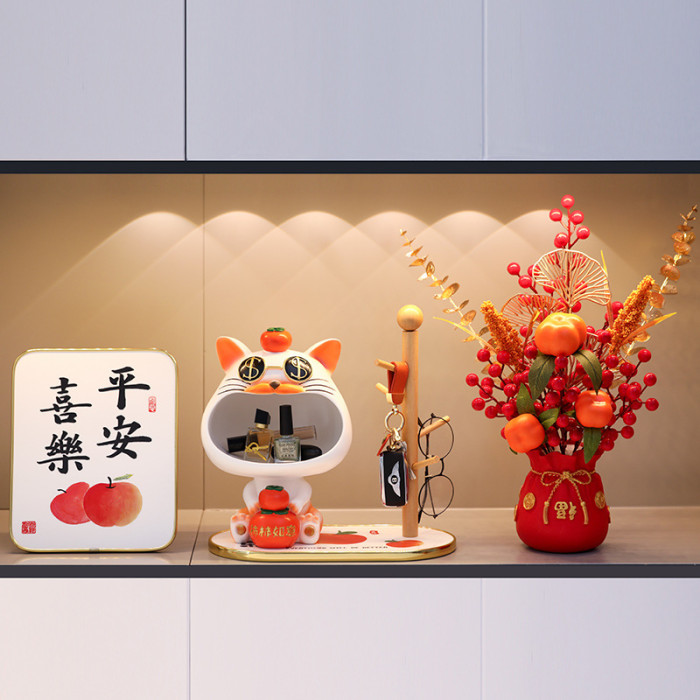 新中式入戶玄關家居擺件鑰匙收納托盤柿柿如意招財貓新房喬遷造型