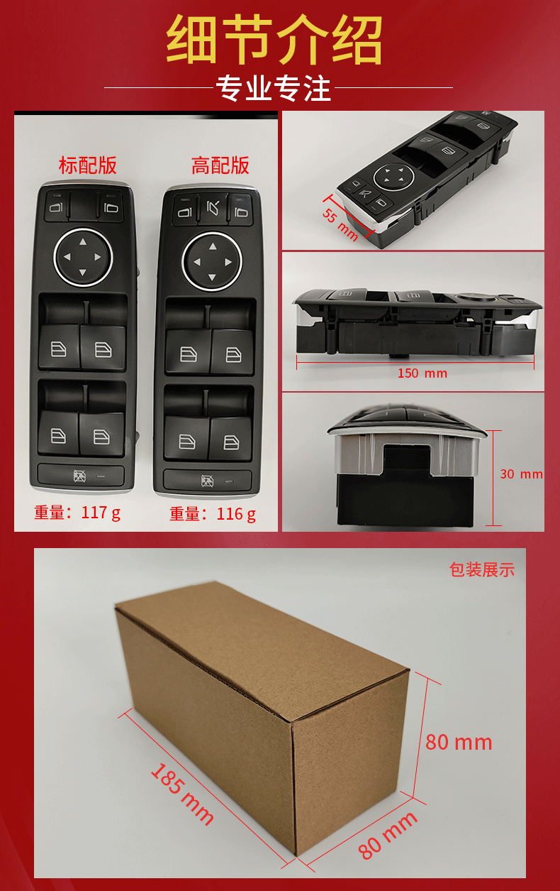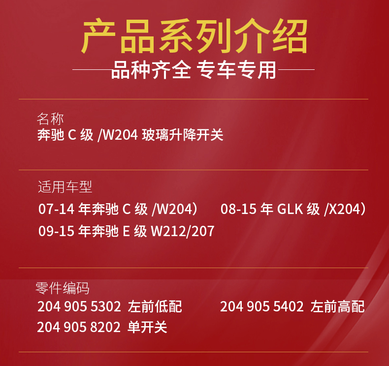 適用於奔馳C級W204玻璃升降開關開關GLK級電動車窗開關2049055402