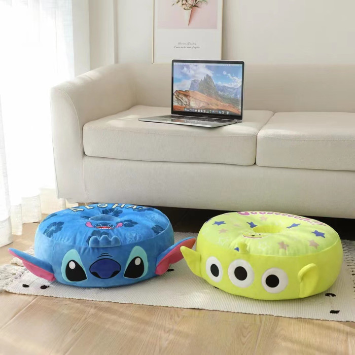毛絨史迪仔圓孔坐墊辦公室椅墊座墊圓形透氣中空墊子飄窗蒲團