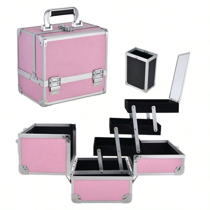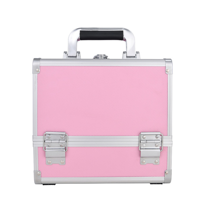手提鋁合金化妝箱鑽石紋ABS大容量高級感帶鏡子收納箱跟妝箱
