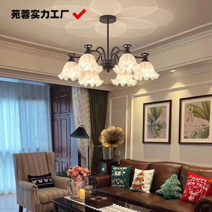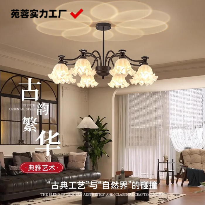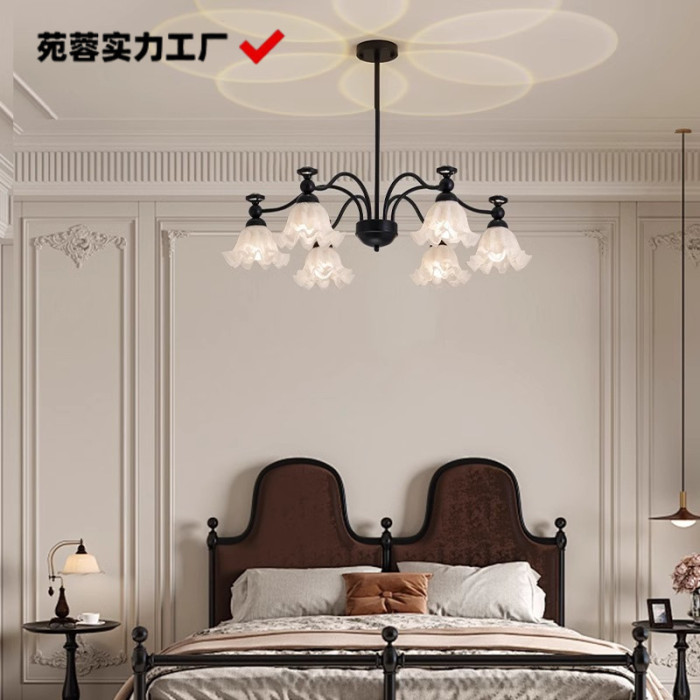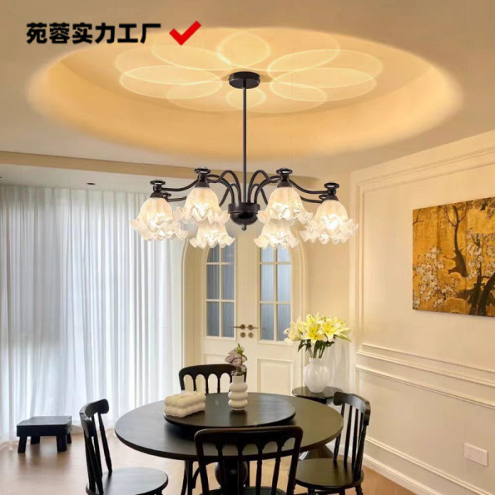 爆款法式復古客廳吊燈奶油風花朵黑色主燈創意大氣臥室餐廳護眼燈
