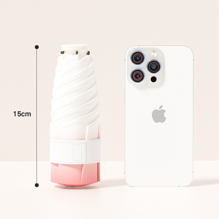 新款五折六骨漸變色雨繖黑膠面料數碼印刷拉環手柄晴雨兩用遮陽繖