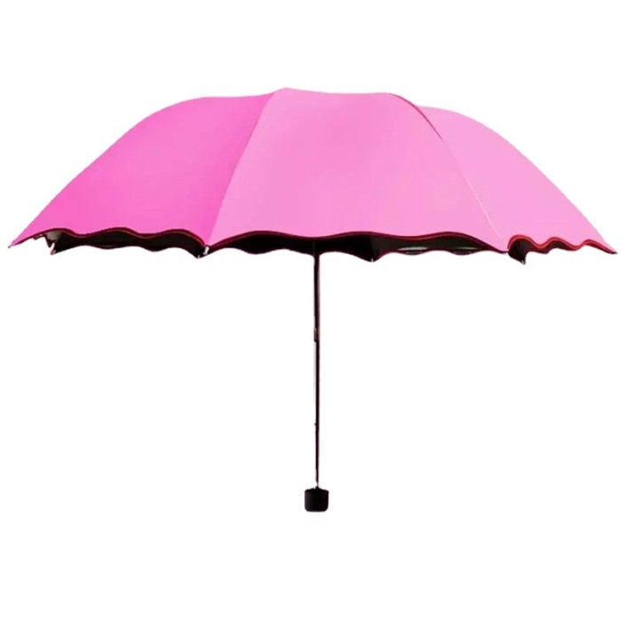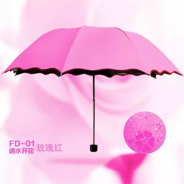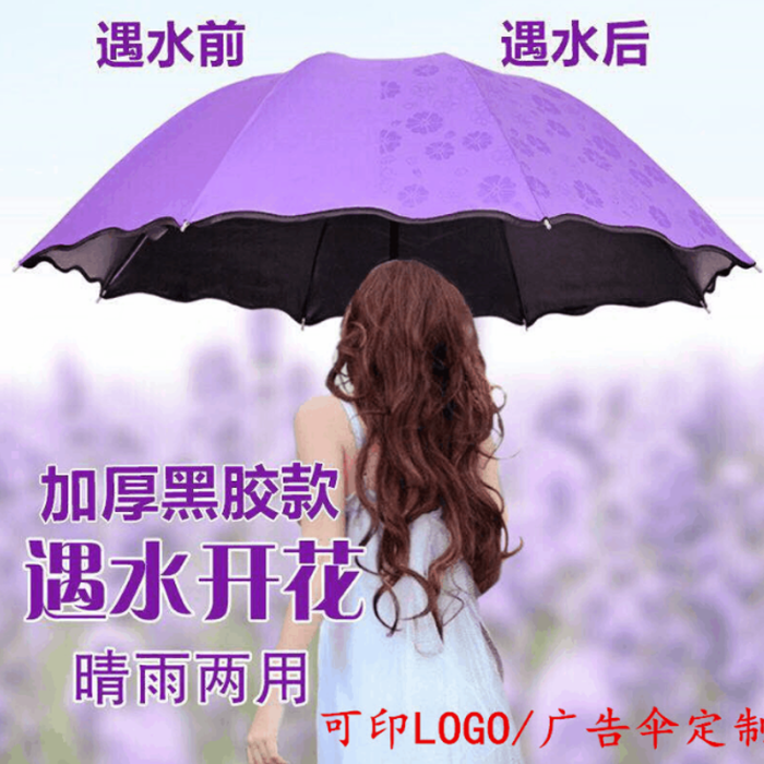 遇水開花變色雨繖女晴雨兩用黑膠防曬遮陽繖防紫外線三折太陽繖