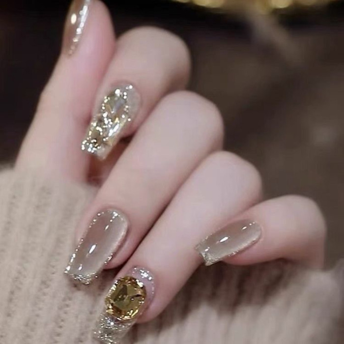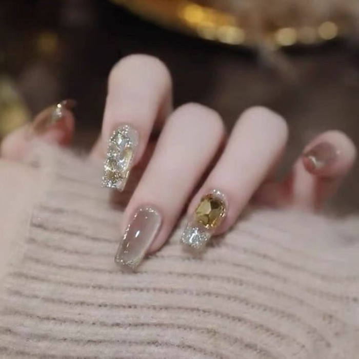 【香檳貓眼】美拉德新款貓眼手工美甲 純手工穿戴甲甲片成品