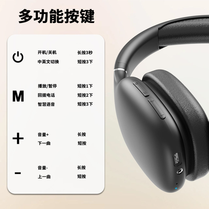 真無線頭戴式藍牙耳機不漏音高音質降噪遊戯大耳麥長續航2024新款