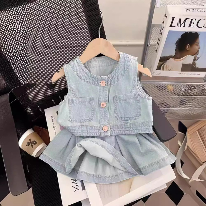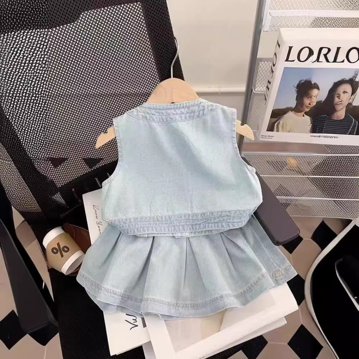 女童套裝2025夏季新款兒童時髦背心半身裙兩件套寶寶洋氣牛仔衣服