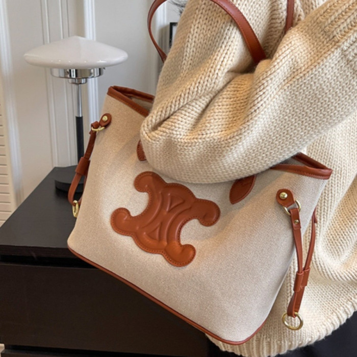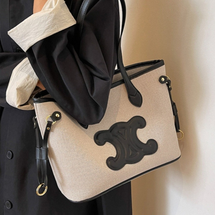 通勤大容量帆布包包2023新款女包休閒洋氣百搭單肩包大學生托特包