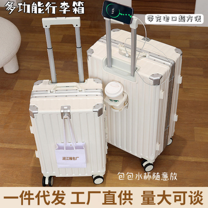 行李箱帶杯架款女旅行箱高顔值學生鋁框密碼箱24寸登機箱拉桿箱子