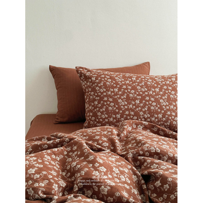 田園風全棉色織提花被套單件加厚雙層紗純棉紗布被罩150x200x230c