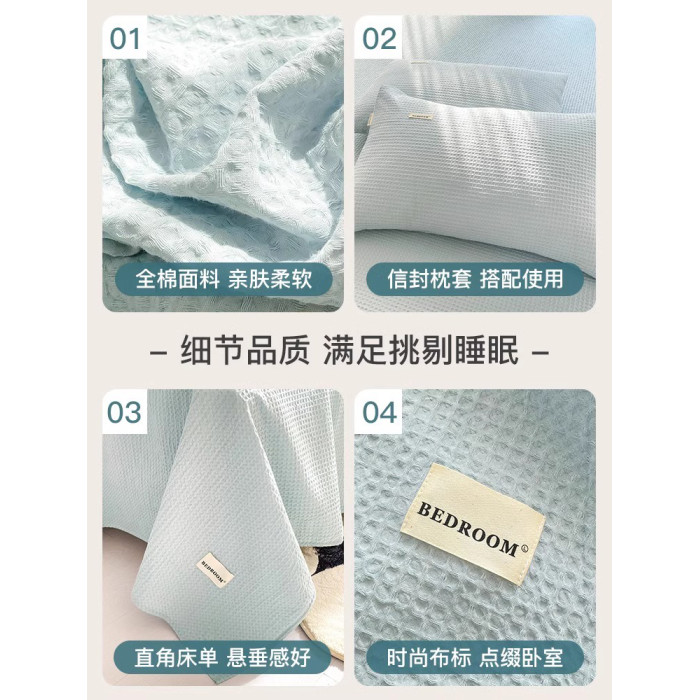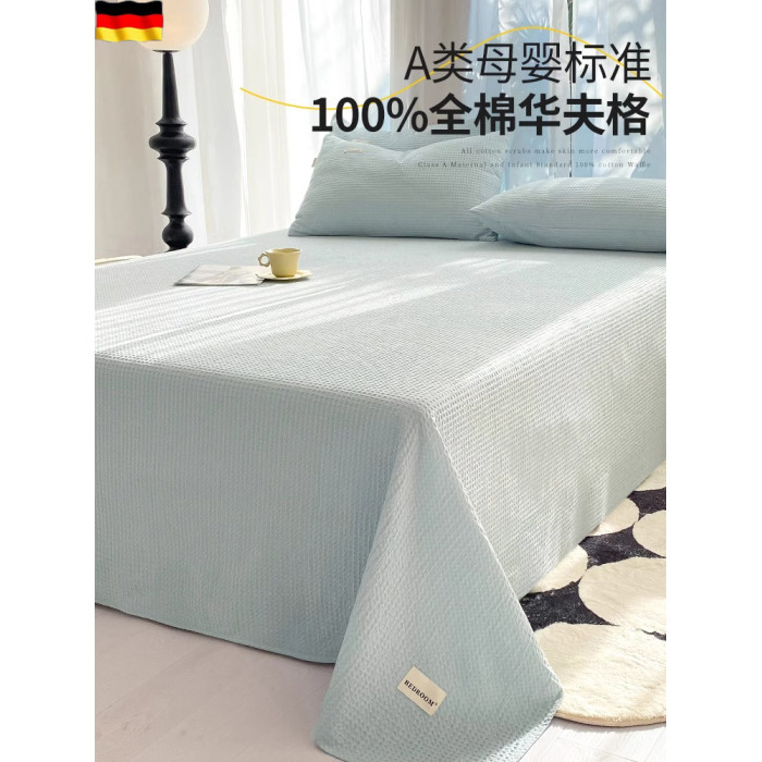 德國純棉床單2025新款A類華夫格100全棉被單床笠臥室清涼三件套