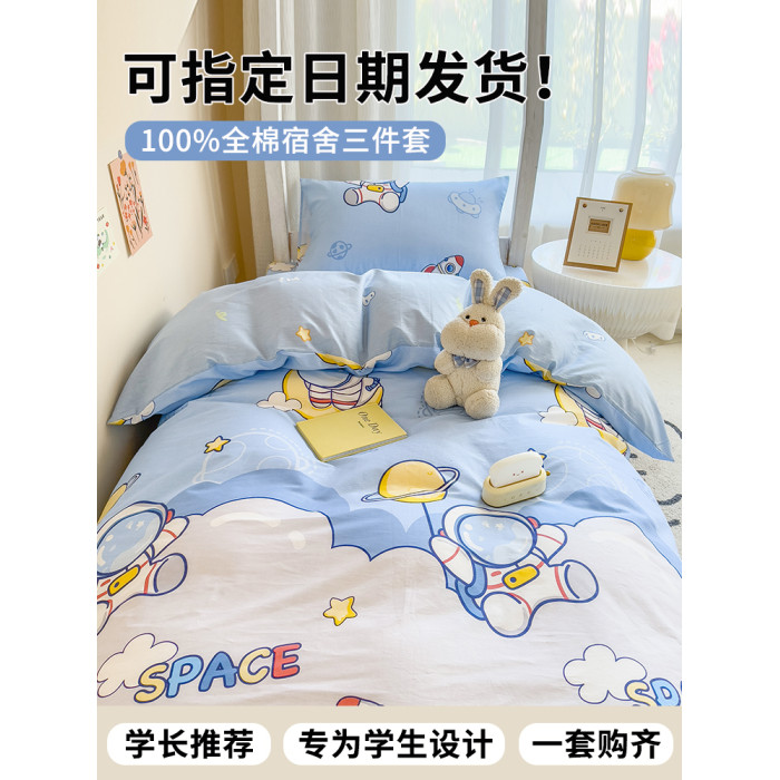 大學生宿舍床上三件套純棉單人床笠床單被套四件套寢室床品六件套